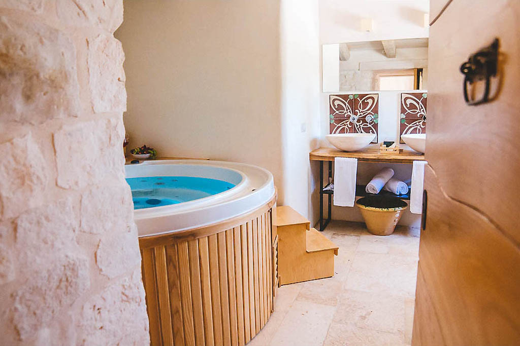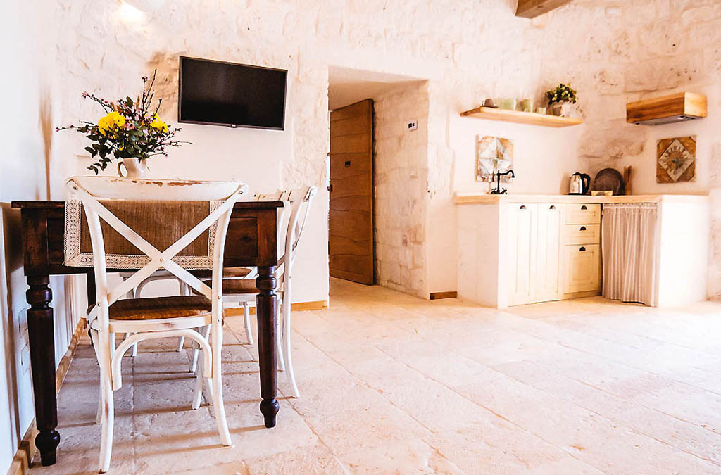 Today the property is composed of two main areas: the the historic stone Masseria and a small Trulli village, featuring 14 original cones. The Masseria dates back to 1897 and preserves the original structures, beautifully restored while retaining all the charm of traditional Apulian architecture, reflected in the stone and the surrounding natural beauty.